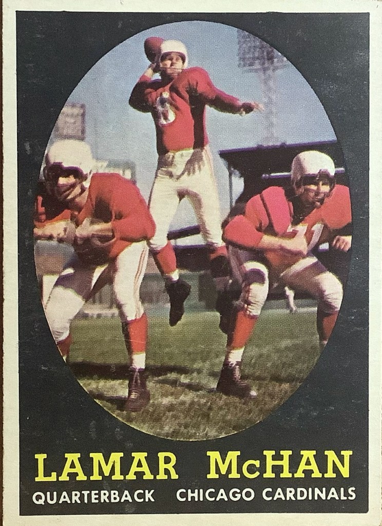 LaMar McHan played 10 seasons in the NFL for 4 different teams including the Chicago Cardinals, now the Arizona Cardinals, and the Green Bay Packers where he was the #1 quarterback over Bart Starr for a period from 1959 into the 1960 season.